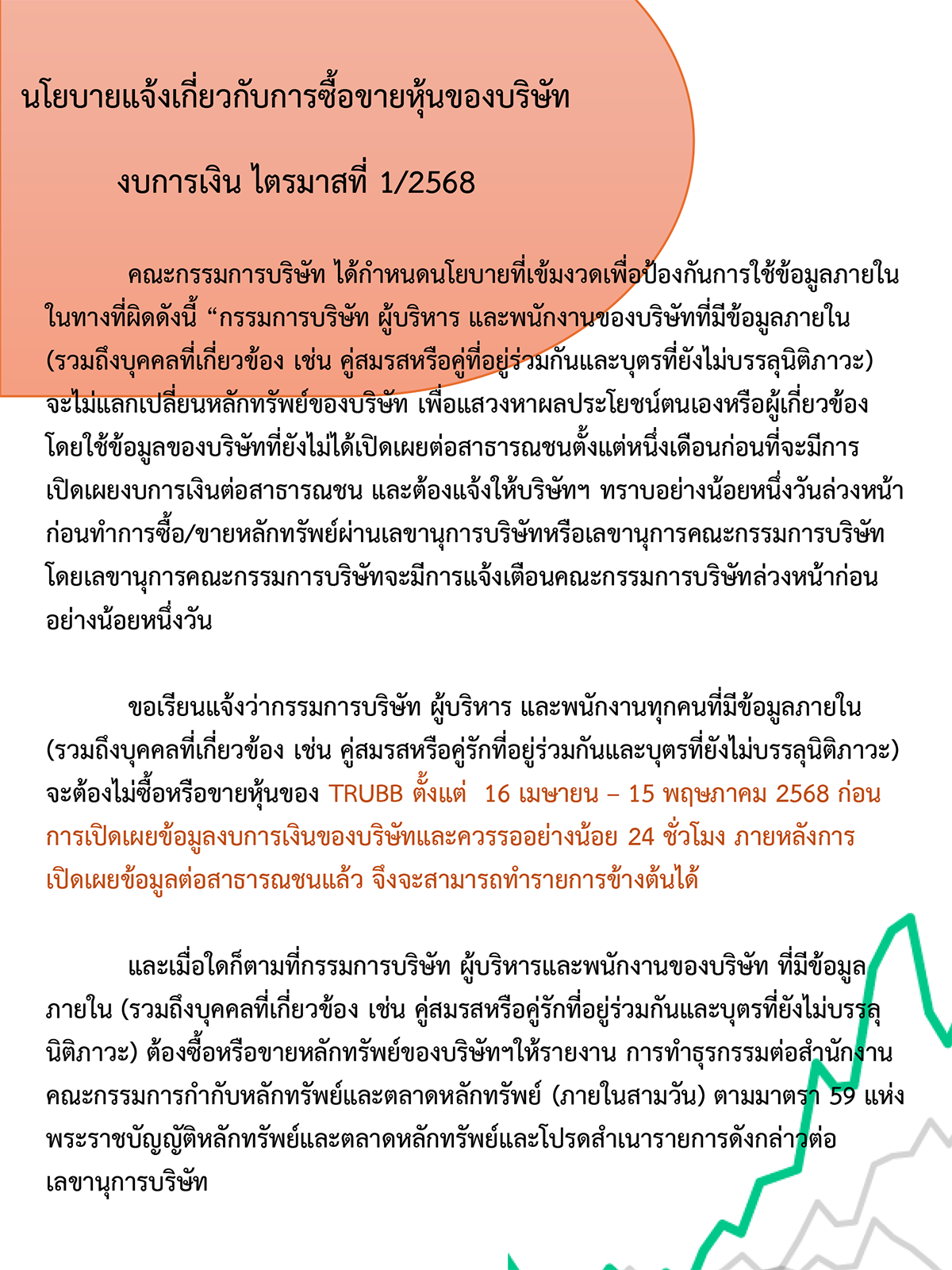 นโยบายแจ้งเกี่ยวกับการซื้อขายหุ้นบริษัท